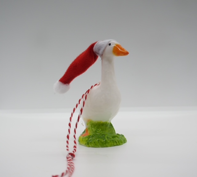 Each ornament is lovingly crafted and painted by hand, ensuring every goose is unique. Whether you’re decking the halls or feathering your nest, these pint-sized porch geese will quack everyone up.